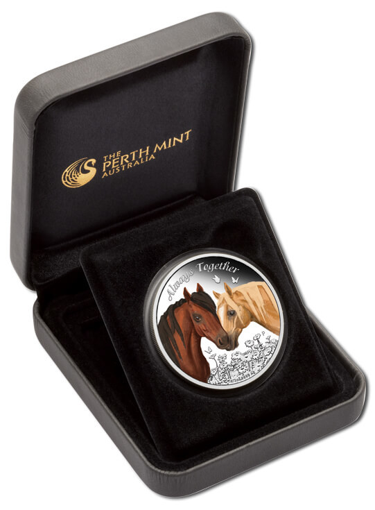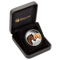This beautiful 1/2 Oz Silver coin is dedicated to love and friendship. The lovely coin is colored and features two horses. The coin comes in a delightful coloured case, with a numbered Certificate of Authenticity included. Limited mintage to 7.500 pieces worldwide.