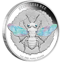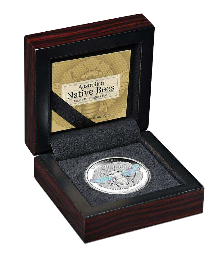 An official legal tender issue, this innovative tribute celebrates Australia’s Stingless Bee (Tetragonula carbonaria). Found in the northern and eastern Australia, the Stingless Bee is a small but mighty pollinator that produces a unique, rich bush honey. This is known as ‘sugarbag honey’, and has been cherished by Indigenous Australians since time immemorial. Struck to the pinnacle of Proof quality from 1oz of 99.9% pure silver, and distinguished by a shimmering hologram effect, this coin captures the delicate beauty of this iconic Aussie bee perfectly.