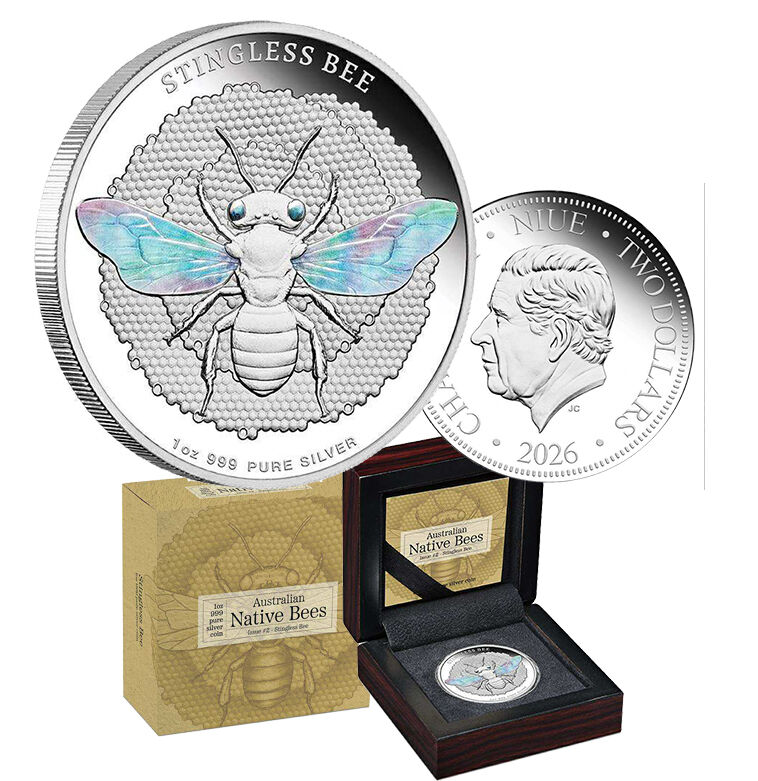 A masterpiece of modern minting, and an exclusive limited edition, we are delighted to present the second coin in the Australian Native Bees Series – the 2026 $2 Stingless Bee Hologram 1oz Silver Proof Coin!