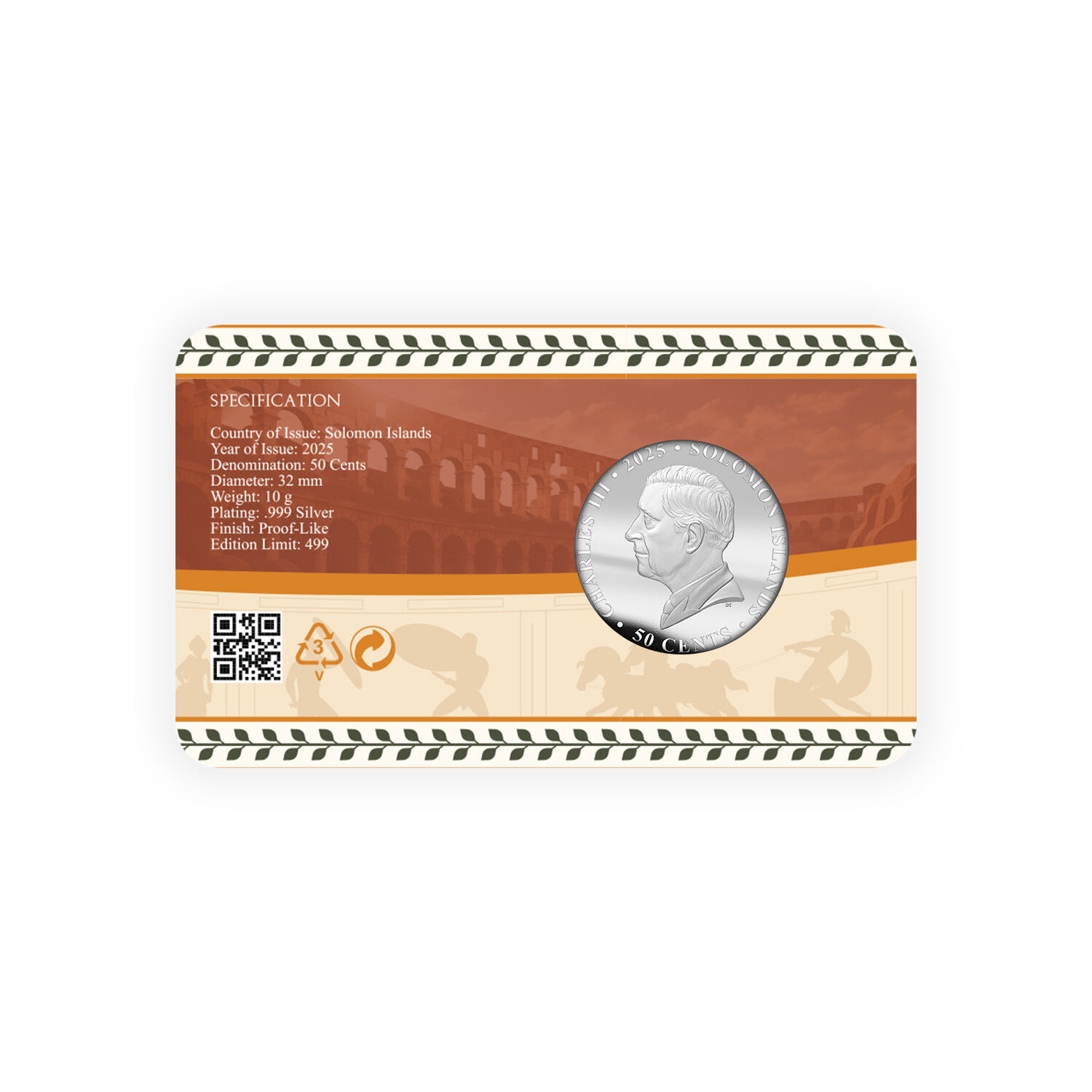 Struck to a brilliant uncirculated finish and plated in fine .999 silver, this limited edition Solomon Islands coin pays tribute to the enduring legacy of Julius Caesar — military general, political reformer and symbol of the Roman Republic. Featuring a finely detailed portrait of Caesar and inspired by ancient coinage, it’s a timeless keepsake for anyone fascinated by Roman history.