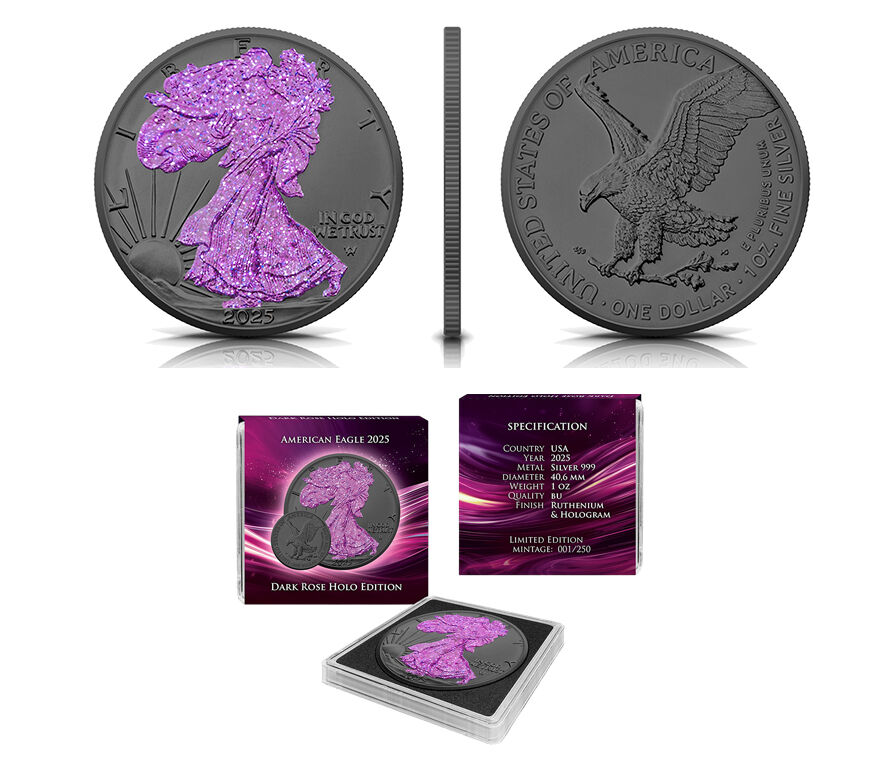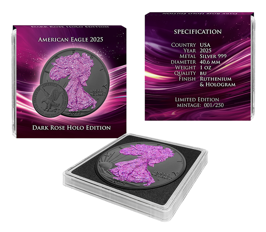 2025 American Silver Eagle 1oz Dark Rose Holo Edition