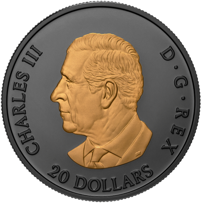 Among the many fascinating leaves found in Canada’s eastern forests, the sugar maple truly stands out. Its distinctive outline, deeply veined lobes, and irregularly toothed edges give it a familiar-yet-intriguing look that sets it apart from the rest, and these iconic features are especially prominent on this coin from the Royal Canadian Mint. Enhanced with selective gold plating, this 1-oz. 99.99% pure silver coin features a black rhodium plated field that puts all the focus on the elegant maple leaf, creating a striking contrast that transforms the beloved Canadian emblem into a shining symbol of resilience and natural grace.