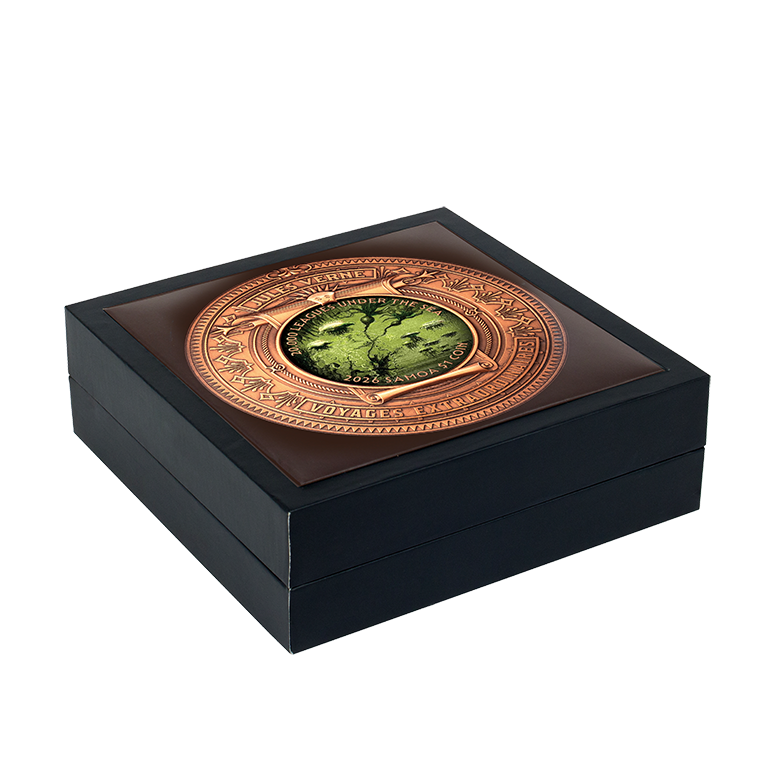 Issued in tiny numbers, with a mere 400 struck, this dynamic legal tender coin pays homage to Jules Verne’s pioneering science fiction novel, Twenty Thousand Leagues Under the Seas. First published as a book in 1870, this iconic maritime tale details the adventures of Professor Pierre Aronnax, his servant Conseil and seaman Ned Land as they travel the world’s oceans after being captured by Captain Nemo and taken aboard his futuristic submarine, Nautilus. Having many features that accurately anticipated those of the modern submarine, Nautilus was described by Verne as 'a masterpiece containing masterpieces' – a description that could easily be applied to this sensational new coin!