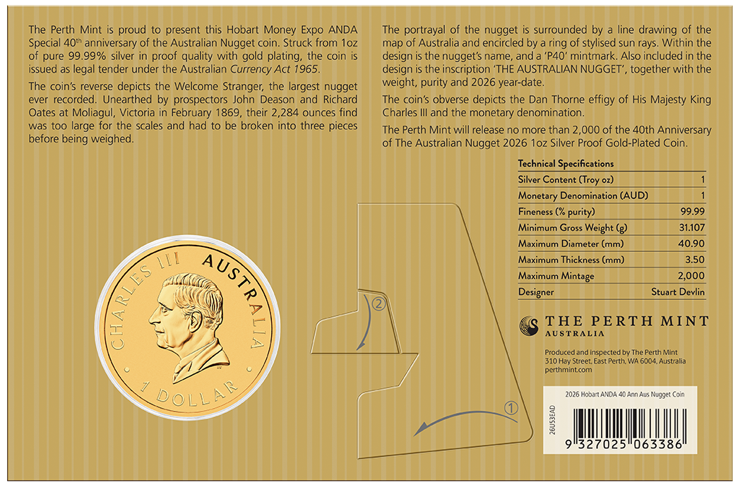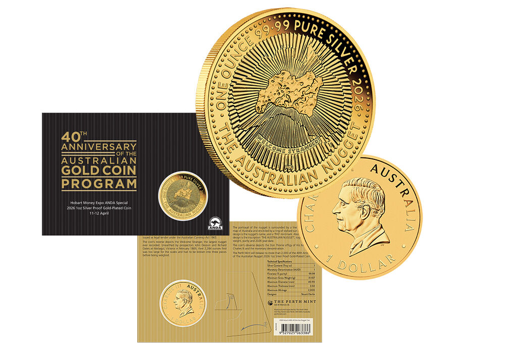 2026 $1 40th Anniversary of the Australian Nugget 1oz Silver Gold Plated Coin