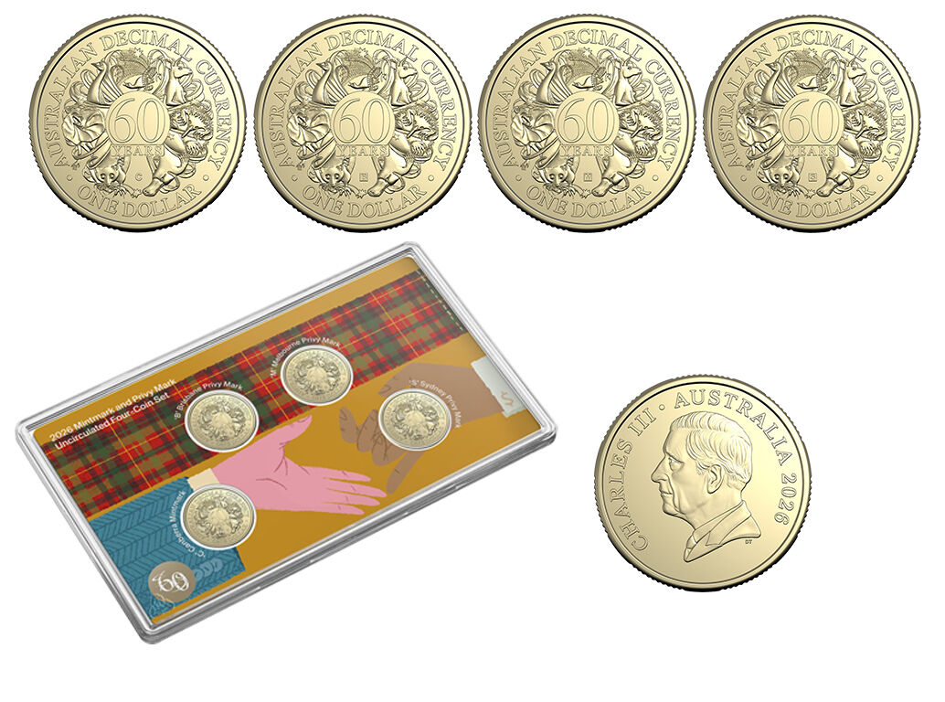 2026 $1 60th Anniversary of Decimal Currency 4 coin Mint and Privy Mark UNC Set