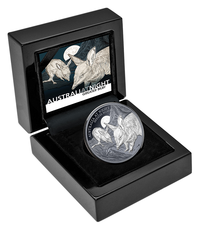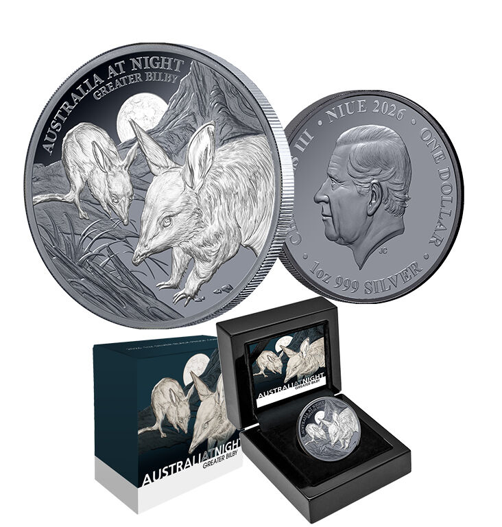 Sharply detailed, the depiction of the Bilby at night is brought to life through the captivating contrast of the sparkling 99.9% pure silver and the rich, distinctive Black Proof finish. As exclusive as it is eye-catching, the Australia at Night 2026 $1 Greater Bilby 1oz Silver Black Proof has a mintage of a mere 1,000 coins – each presented within a premium case with a numbered Certificate of Authenticity.