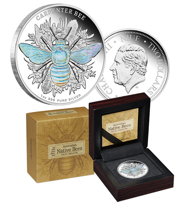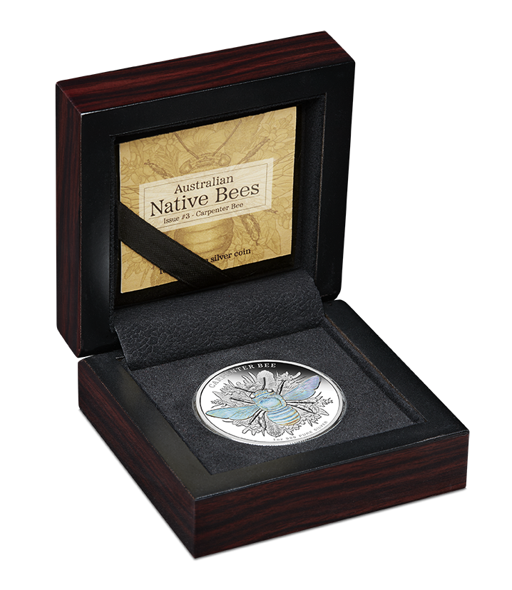 The 2026 Australian Native Bees - Carpenter Bee 1oz Silver Proof Hologram Coin is the third coin from the Australian Native Bees series.
