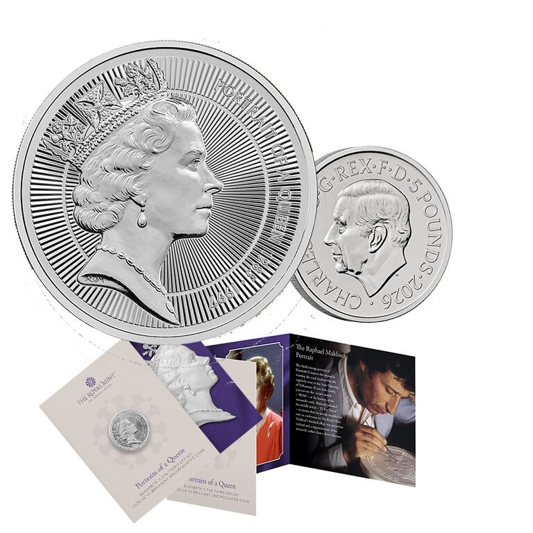 A special collection exploring the five definitive coinage portraits of Queen Elizabeth II. The obverse of each coin features the official coinage portrait of His Majesty King Charles III, uniting mother and son. Each coin in our Portraits of a Queen Collection is dated 2026, which marks the centenary of Elizabeth II’s birth.
