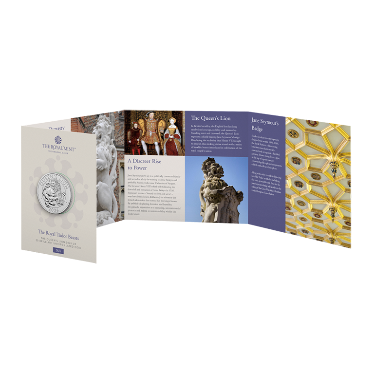 - Each coin is accompanied by packaging that delves into the history and significance of the Queen’s Lion, providing a captivating glimpse into Tudor heraldry and royal tradition