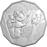 A unique, one-year-only type, the 31.50mm diameter flan carries a charming portrayal of a mother & baby koala, with a sleeping koala nestled in a gumtree in the background. A fine piece of numismatic design, the gum leaves motif conveys the sense of a tree canopy. An official Australian legal tender issue, the obverse is adorned with the official portrait of King Charles III, designed by Daniel Thorne.