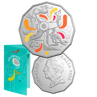 - Vibrant Coloured Design: Full-colour pad printing on the uncirculated 50c coin creates a joyful, eye-catching celebration motif.