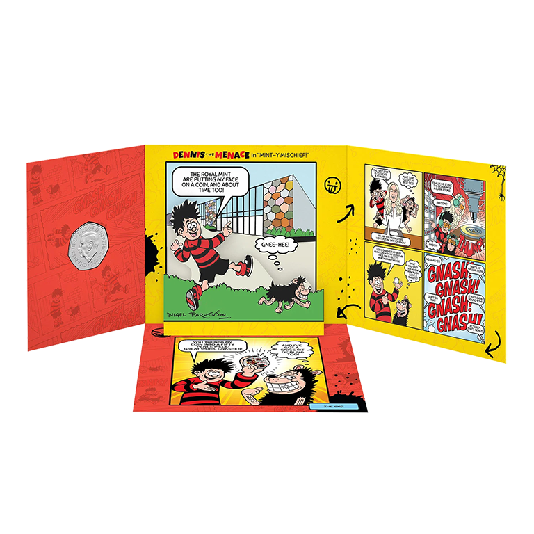 - The comic strip depicts Dennis and Gnasher's whirlwind visit to The Royal Mint