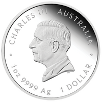 The coin’s reverse includes five effigies of Queen Elizabeth II, each featured on coins produced by The Perth Mint, representing distinct periods of her historic reign. At the centre is the most recent effigy of Queen Elizabeth II designed by Jody Clark (2019), elegantly framed in an ornate design. Surrounding it are four earlier effigies: Ian Rank-Broadley (1998) at the top left, Raphael Maklouf (1985) at the bottom left, Arnold Machin (1966) at the bottom right, and Mary Gillick (1953) at the top right. Together, these portraits reflect the evolving image of the monarch across seven decades of her reign. The background features Australia’s national floral emblem, the golden wattle, symbolising the nation’s connection to the
