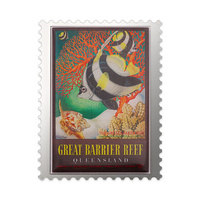 - Medallions measure 62mm x 45mm, die-cut in the shape of a perforated stamp