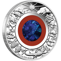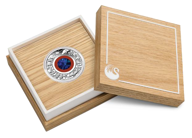 The design encircles a round opal insert. Opal is known as Australia’s national gemstone. In ancient Aboriginal Dreamtime stories, it was created when a rainbow touched the earth. It is also known to Indigenous people as the ‘fire of the desert’. Today, Australia produces most of the world’s precious opal, which when cut and polished can be used to create some of the world’s most alluring jewellery pieces.