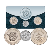 An entirely fitting tribute to decimalisation, this set includes three coins bearing the Ram’s Head design. Arguably the most iconic predecimal motif, along with the Bounding Roo, the Ram’s Head design depicted the Champion of the 1932 Sydney Sheep Show. The design was created by artist and graphic designer Douglas Annand, and adapted for coinage by George Kruger Gray.